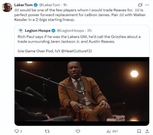 湖媒laker Tom转发里奇-保罗的言论后写道:3J是我愿意用里夫斯交易的几位球员之一,小贾伦可以完美取代勒布朗-詹姆斯大前锋的位置,今夏湖人队还可以签下沃克-凯斯勒组建一套顶级的双高阵容。