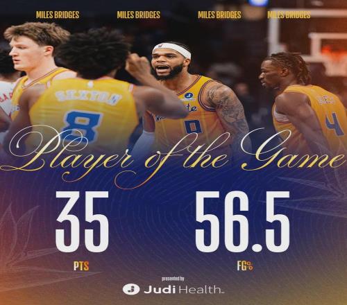 此役三球只出战21分41秒,投篮16中6,三分6中1,罚球1中1,拿到14分2篮板5助,2失误4犯规,正负值-10全队第二低。黄蜂这场胜利,跟三球没什么关系,主要是小桥狂砍35分,外加4号秀克尼佩尔砍下20+6+4+2的全面数据。