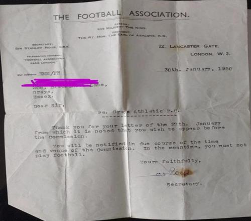 近日,一球迷在社交媒体上晒出祖父1950年被禁赛文书,讲述了那个时期一名业余球员因接受报酬而被禁赛两年的有趣故事。